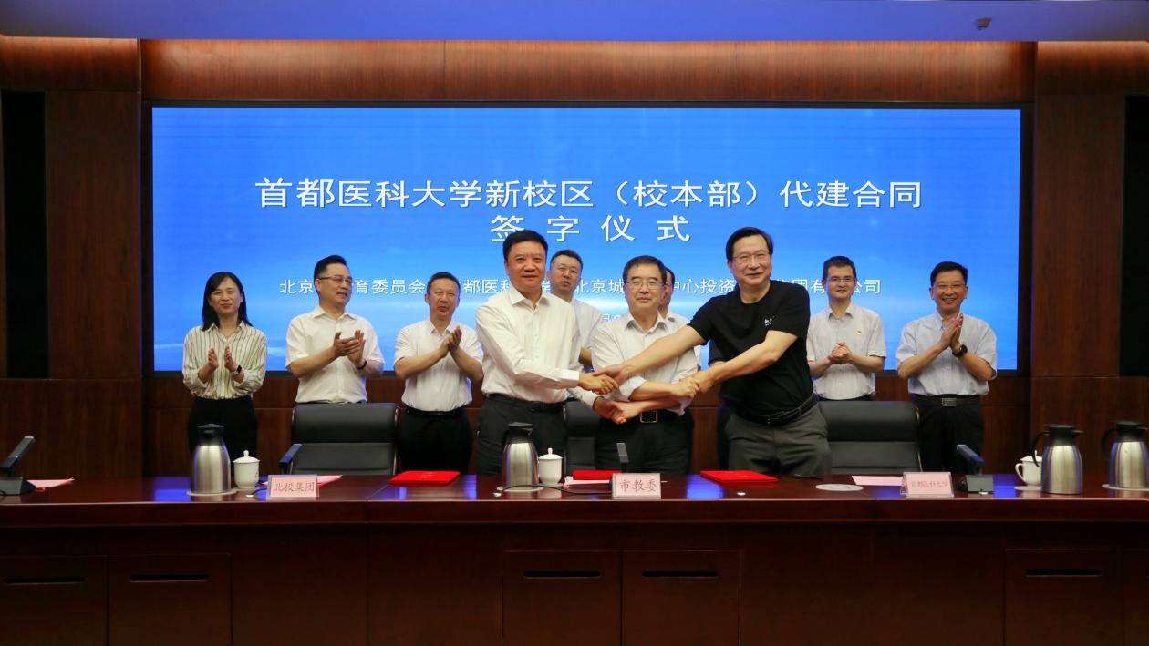5月24日,市教委、首都醫(yī)科大學(xué)、北投集團(tuán)簽訂首醫(yī)大新校區(qū)(校本部)代建合同。市委教育工委副書(shū)記、市教委主任李奕,北京教育學(xué)院院長(zhǎng)張永凱,首都醫(yī)科大學(xué)黨委書(shū)記呼文亮,校長(zhǎng)饒毅,黨委副書(shū)記孫力光,黨委常委、副校長(zhǎng)徐良,北投集團(tuán)黨委書(shū)記、董事長(zhǎng)李長(zhǎng)利,黨委委員、副總經(jīng)理高小強(qiáng)等參加活動(dòng)。