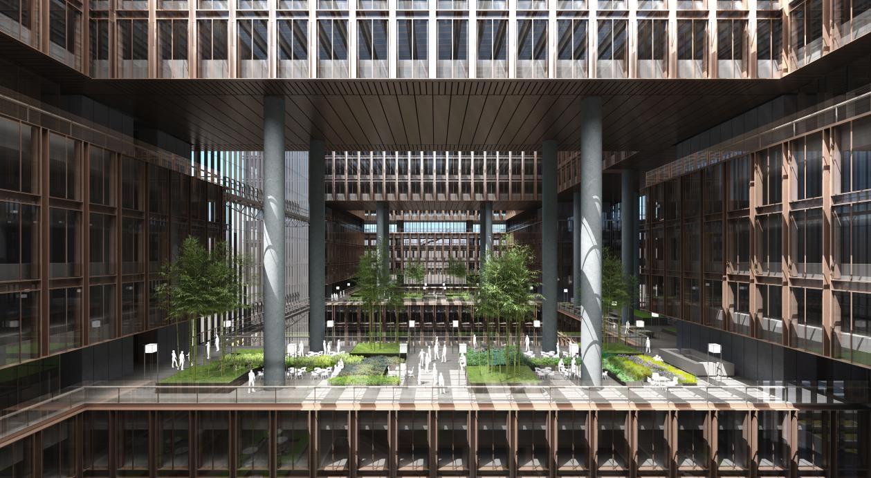 80米高的挑空大廳、7個(gè)采光中庭,使亞洲金融大廈內(nèi)所有工作區(qū)能享受最為均衡的自然采光和開(kāi)闊視野空間;10處空中花園,分別種植熱帶、亞熱帶植物等,營(yíng)造兼具藝術(shù)性和實(shí)用性的綠色多元復(fù)合活力商務(wù)空間;雙層內(nèi)呼吸式玻璃幕墻,配合智能電動(dòng)遮陽(yáng)系統(tǒng)和通風(fēng)換氣系統(tǒng)等,在實(shí)現(xiàn)節(jié)能效果、提升隔聲性能的同時(shí),保障恒溫恒濕的辦公條件