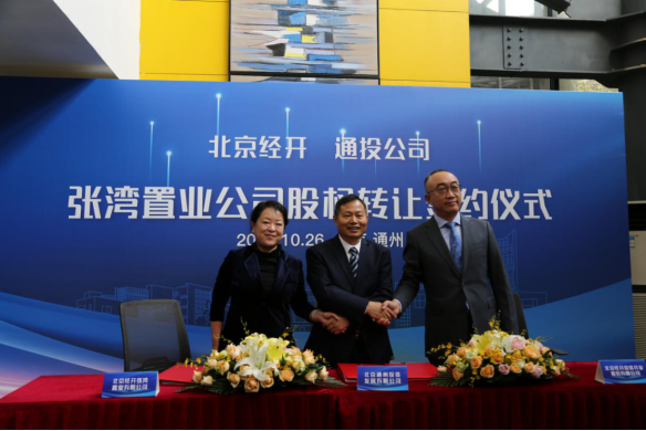 10月26日,通投公司與北京經(jīng)開投資開發(fā)股份有限公司就收購(gòu)北京經(jīng)開張灣置業(yè)有限公司股權(quán)簽約儀式舉行。通州區(qū)副區(qū)長(zhǎng)樓俊峰,北投集團(tuán)黨委副書記、總經(jīng)理、通投公司董事長(zhǎng)陳衛(wèi)東,北京亦莊投資控股有限公司總經(jīng)理?xiàng)钗牧嫉阮I(lǐng)導(dǎo)出席。